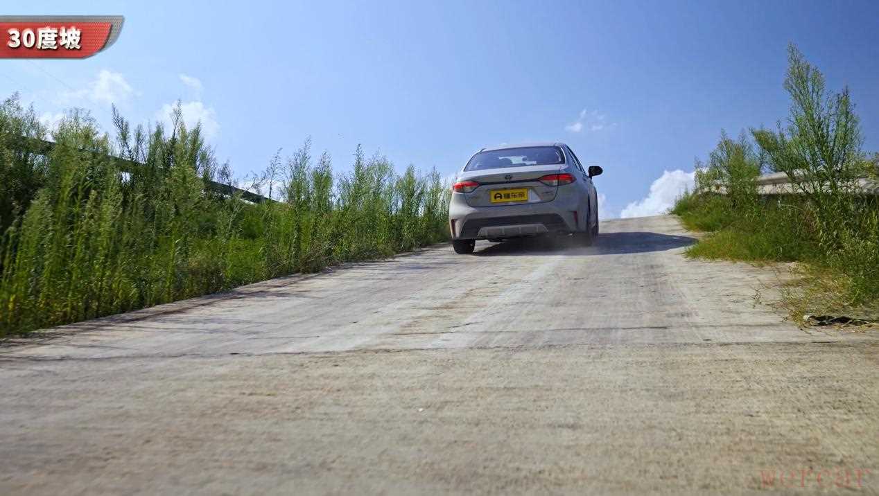 但光跑强化路面只能考验车辆的底盘悬架和车身,测试并不是很全面。因此我们给雷凌双擎增加了符合重庆当地用车环境的测试项目——爬坡。坡起一两次对于车辆来说肯定是没有问题的,但是在不同坡度的坡道上多次频繁坡起对于传动系统和制动系统来说都是不小的考验。所以我们此次的测试场地一共有5个坡道,分别为8度、12度、18度、20度和30度。