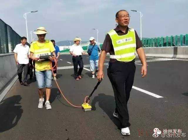 8月11日上午8点,在新建成的金山东路上跨铁路立交桥上,两名特殊的“行人”引起了大家的注意,只见一人在前面拉着一辆小车,后面一人拿着显示器紧随其后,原来,他们在对新建的桥梁进行质量检测。