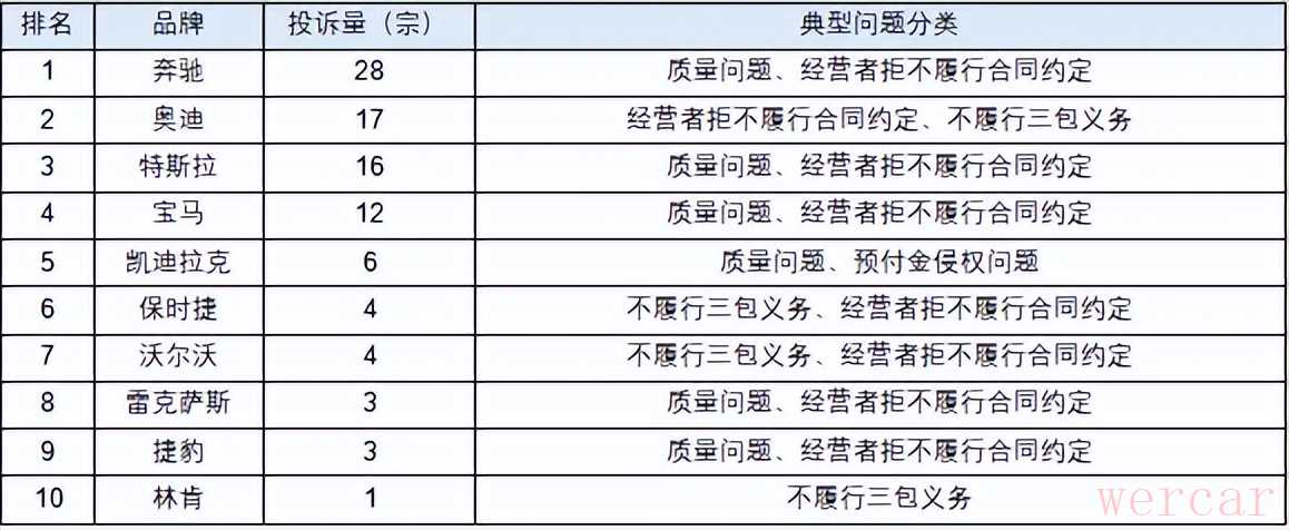 3. "其他品牌涉及":除了奔驰,投诉也涉及其他一些品牌,例如理想汽车、长安汽车以及马自达汽车等。