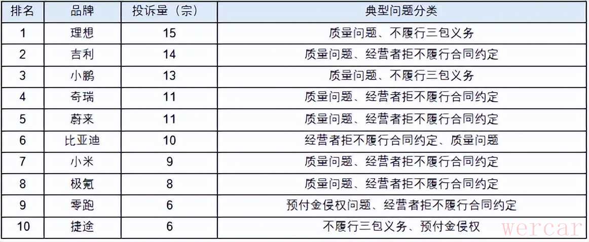 吉利14宗,小鹏13宗,奇瑞11宗,蔚来11宗,比亚迪10宗,小米9宗,极氪8宗,零跑6宗,捷途6宗。