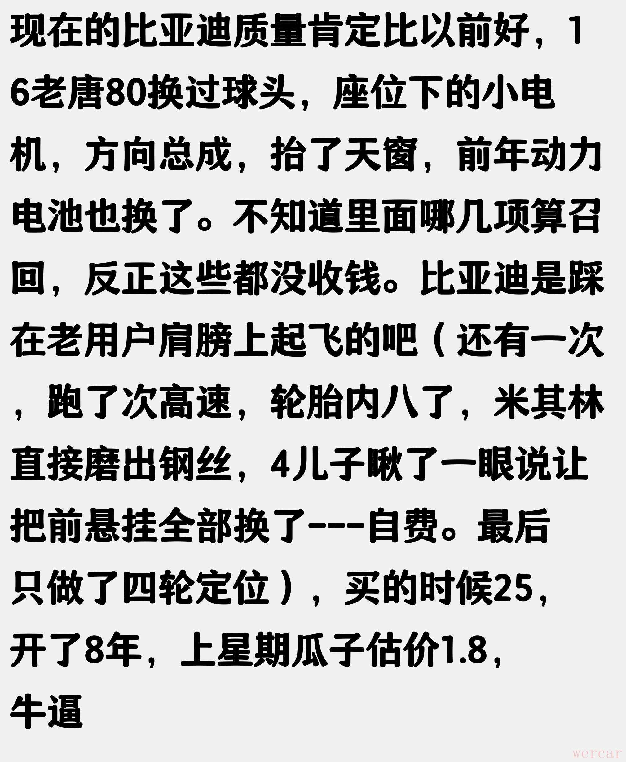 综合来看,网友评论中关于比亚迪质量的讨论,大致可以归纳为以下几个方面: