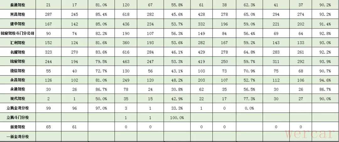新易通驾校 | 26 | 30 | 79.81% | 9 |