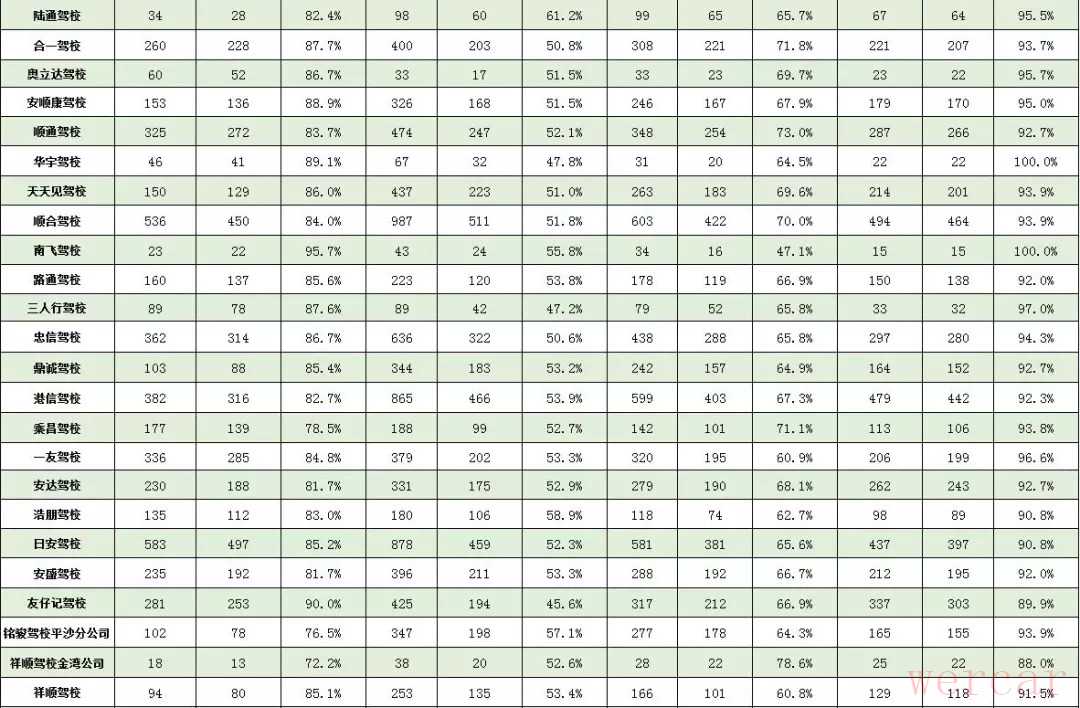 祥顺驾校 | 90 | 88 | 72.70% | 46 |