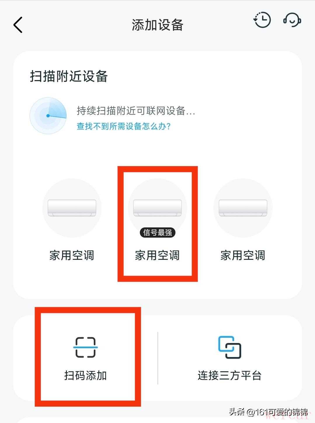 如果扫描不到,点击扫码添加。空调机身一般会有二维码